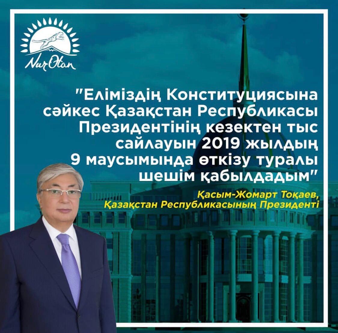 Ал бүгін, 9 сәуірде Қасым-Жомарт Тоқаев ел үшін аса маңызды Үндеу жариялады. Ол өз үндеуінде 2019 жылдың 9 маусымында кезектен тыс Президент сайлауы өтетінін мәлімдеді.