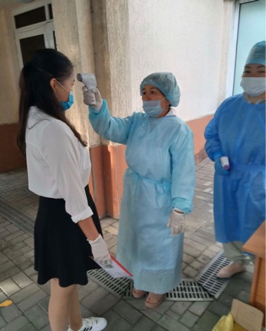медсестра 24 поликлиники сопровождала выпускников 11 и 85 школы для сдачи ЕНТ в университете Нархоз.